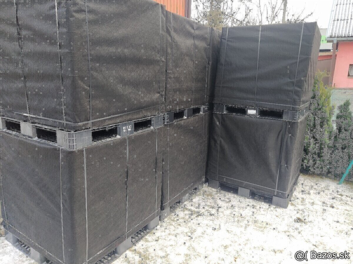 Plastove palety su zviazane plastovymi paletovymi paskami, obalene v geotextilii 300g/m2. Textilia j ...