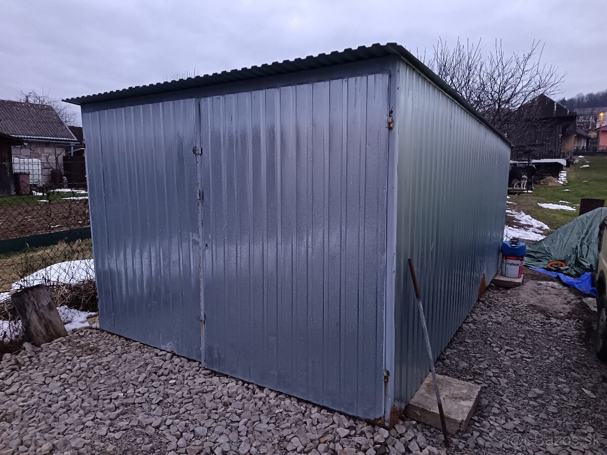 Predám pozinkovanú plechovú garáž 5x3 v zachovalom stave. Využíval som ju ako sklad pri výstavbe domu. Cena 420eu.Len volať 0917414665.