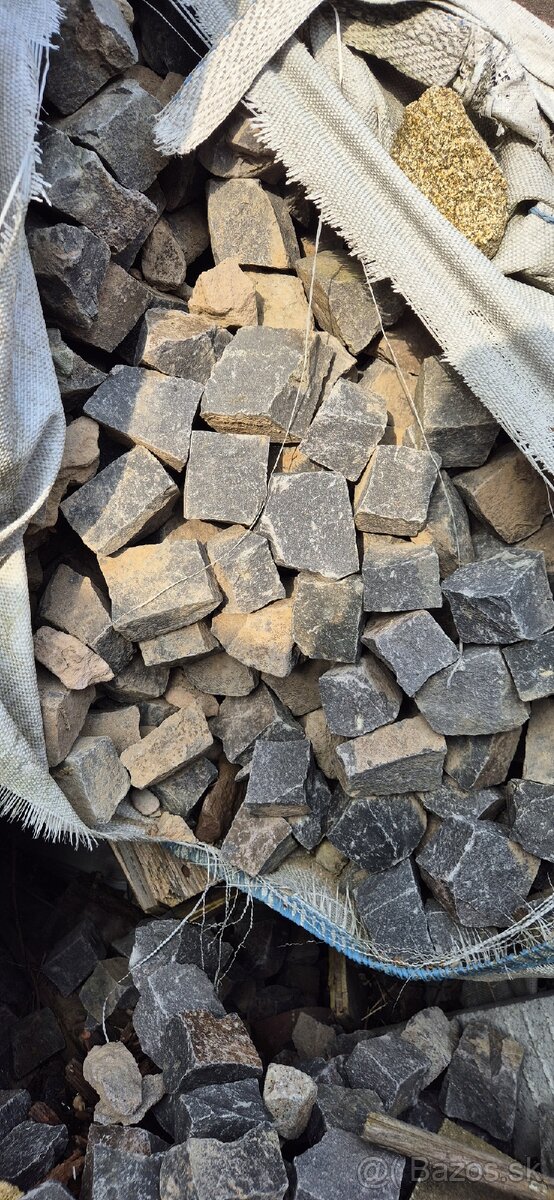 predám čadičovú dlažbu - mačacie hlavy kocky rôznych tvarov cca 40 m2.. sú to 4big bagy plné kociek..