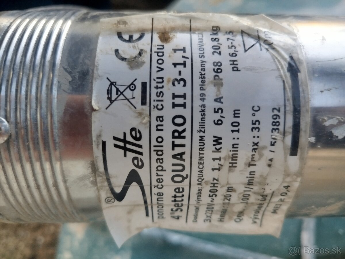 Predám ponorné čerpadlo na čistú vodu do vrtu hlbokého 49 metrov s originálnym káblom aj oceľovým lanom,vodu sme stratili po 2 mesiacoch takže veľmi málo používané,preferujem osobný odber