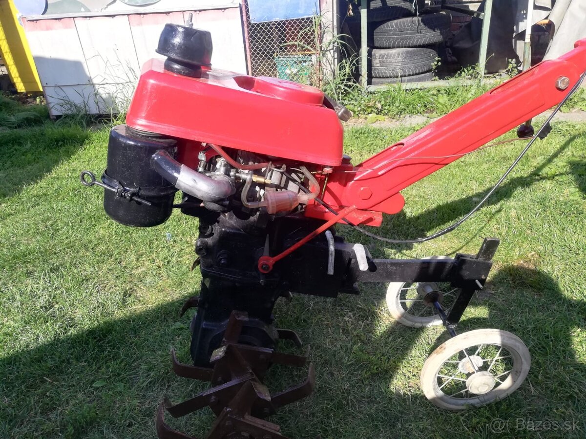 Rotavátor, kultivátor, prevodovka má 1, 2, spiatočku, neutrál …. Perfektná manipulácia aj na menších plochách. Možnosť jednoduchého zúženia podľa potreby +viaceré doplnky… .Všetko ako je na foto.