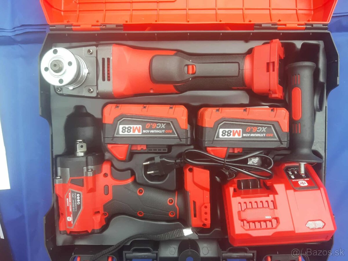Aku baterková akumulátorová uhlová brúska flexa regulacia otačok razový utahovak dve baterky a nabíjačka.