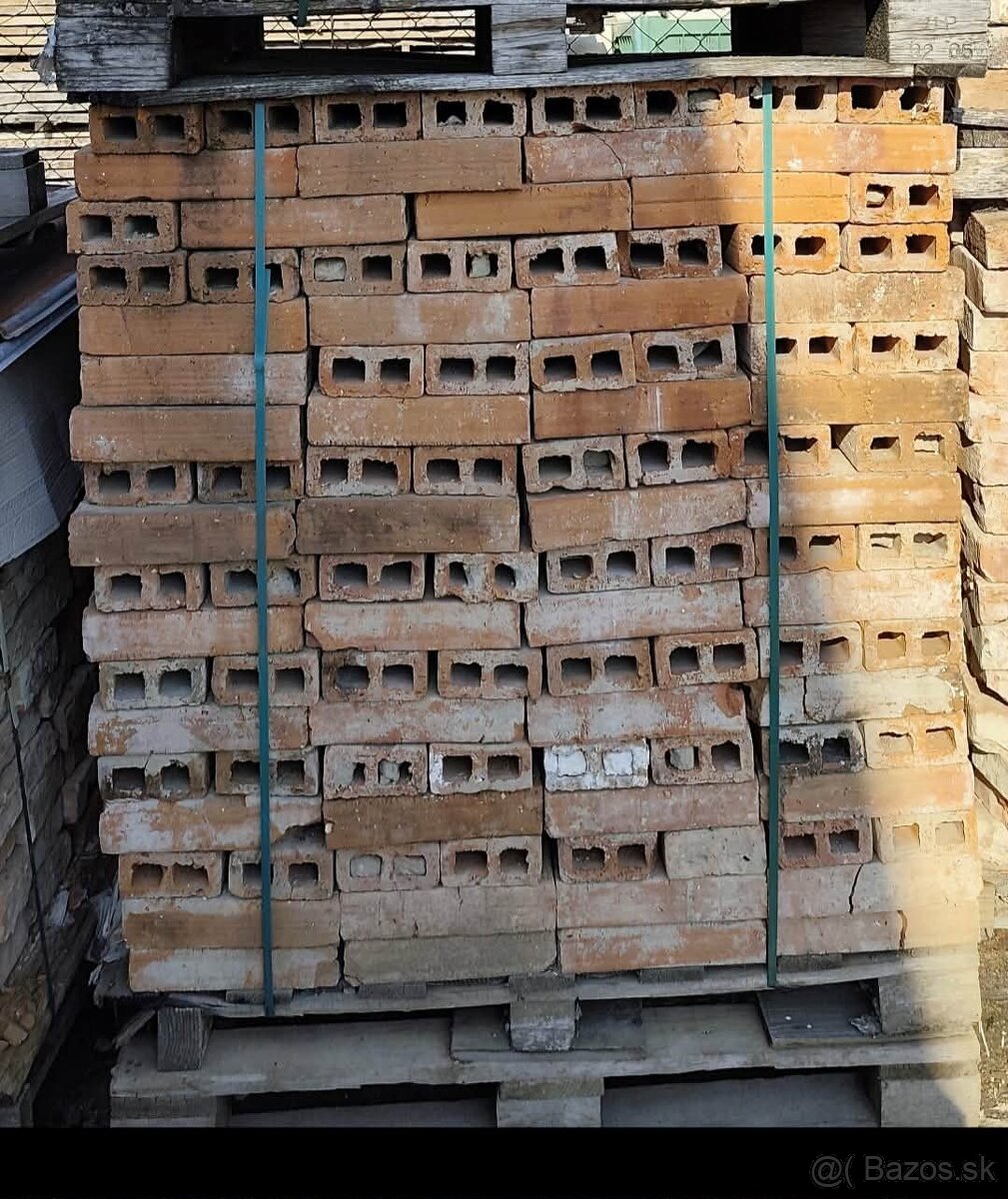 Predám pozdĺžne dierované pálené tehly na výrobu tehlového obkladu, pozdĺžne dierované sa ľahko režú. Cena je 0,35 € za ks, uložené na palete. Cca jedna paleta je aj nových ešte nepoužitých týchto tehál, boli od 1930 umiestnené na povale, nepoškodené.