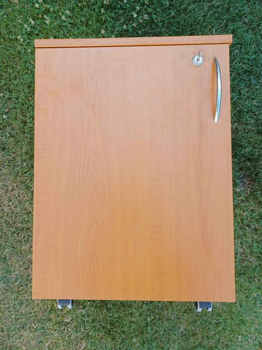 Predám 2ks rovnakých kancelárskych uzamykatelnych kontajnerov dekor čerešňa. Jeden kus je na kolieskach, druhý na nožičkach (viem nahodiť kolieska). Uvedená cena je za 1ks. Kontajnery sú robene na zákazku, žiadny šmejd.