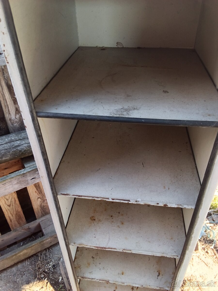 PREDAM TUTO STARU PLECHOVU SKRINKU,DLHODOBO SKLADOVANA V GARAZI,JEDNA NOHA NEDRZI DOBRE,INAK ESTE POUZITELNA VYSKA 117 CM SIRKA 26 CM.CENA JE 12 EURO,LEN OSOBNY ODBER U MNA,NEPOSIELAM. AJ VYMENIM ZA JAC.KAVU VELKU
