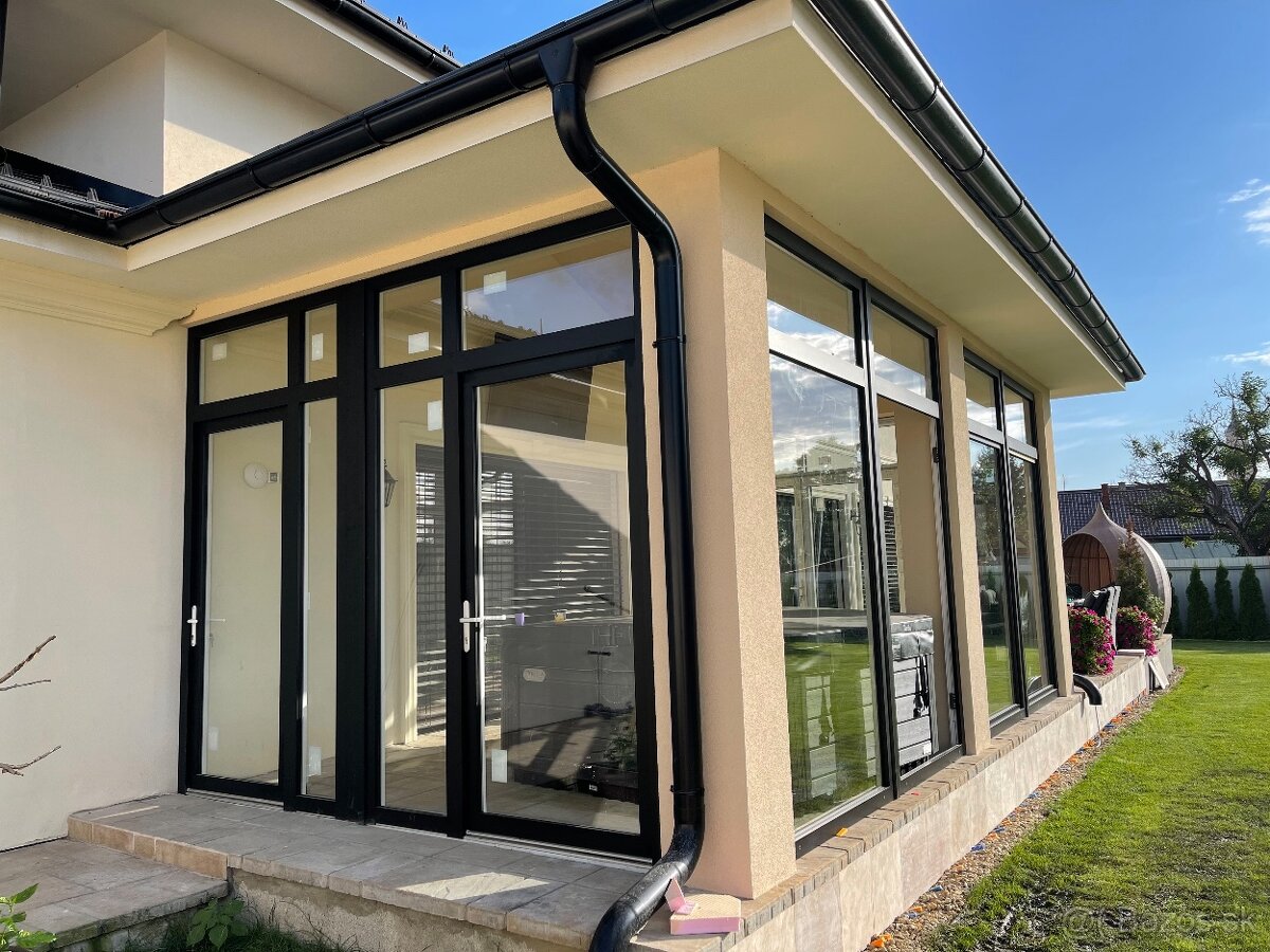 Predám presklenie terasy výška 2,9m šírka 3,5m 2 ks, výśka 2,9m šírka 2,8m 2ks, hliníko plast , izolované 2sklo ,vonkajšia farba čierna, vnútorná farba biela, interierové žalúzie čierne. Ako nové!