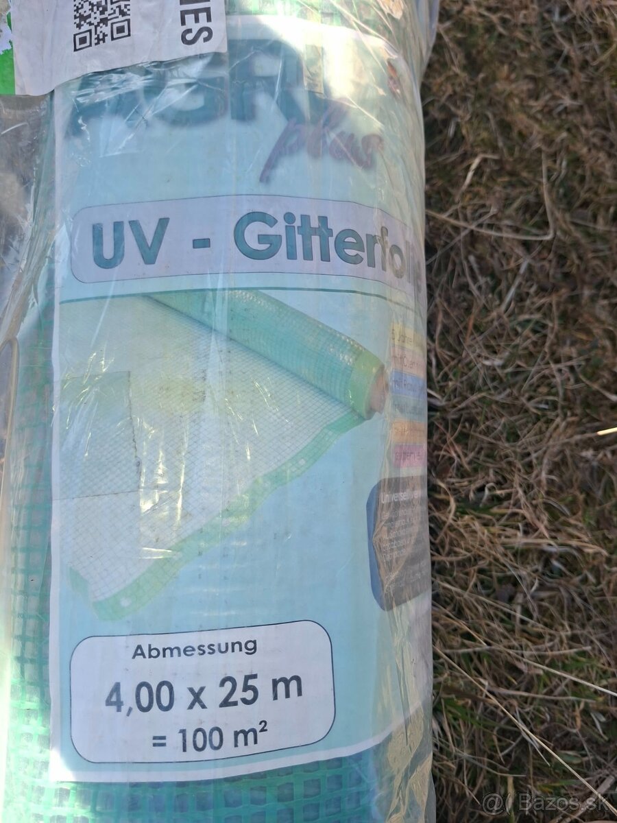 Skleníková fólia 250 g/m².Fólia je z UV odolnej transparentnej vrstvy a spevňujúcej zelenej PE mriežky + vystužené okraje na ukotvenei.
