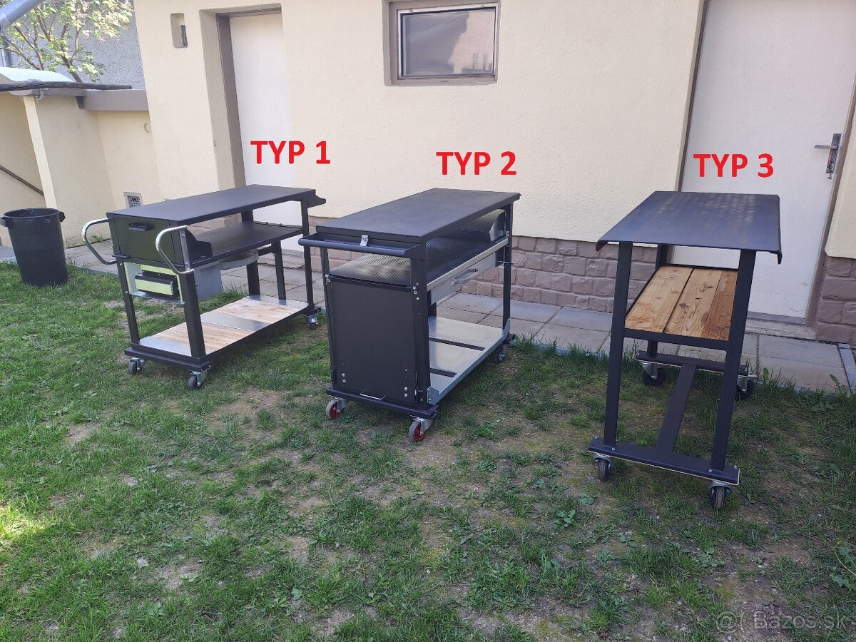 Ponúkam mobilný pracovný stôl. Pevná železná konštrukcia podľa vlastných návrhov. So zaujímavými doplnkami. Hrúbka použitého materiálu 3-5mm. VEĽMI PRAKTICKÝ.