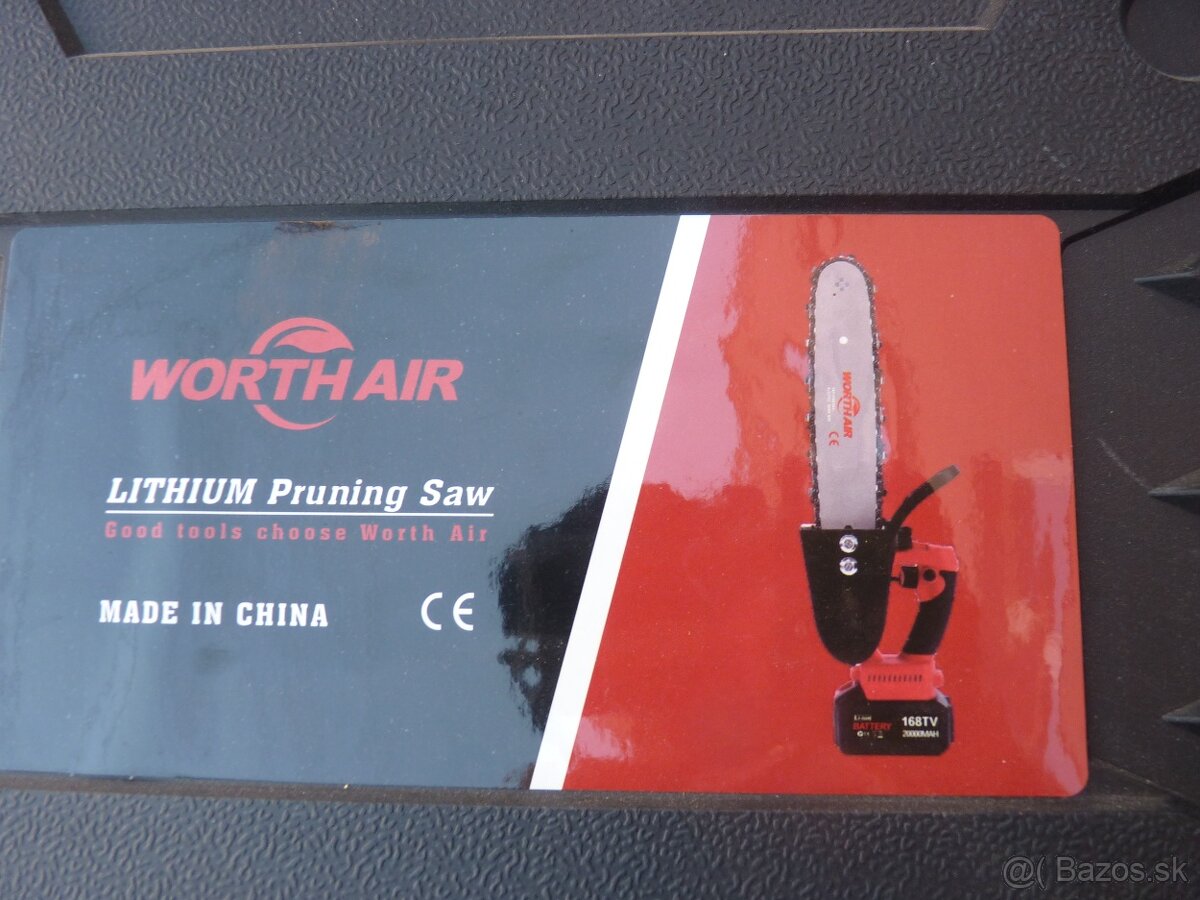 Baterková akumulatorova pila s dvoma baterkami nabíjačkou, lištou reťazou, mazanie reťaze