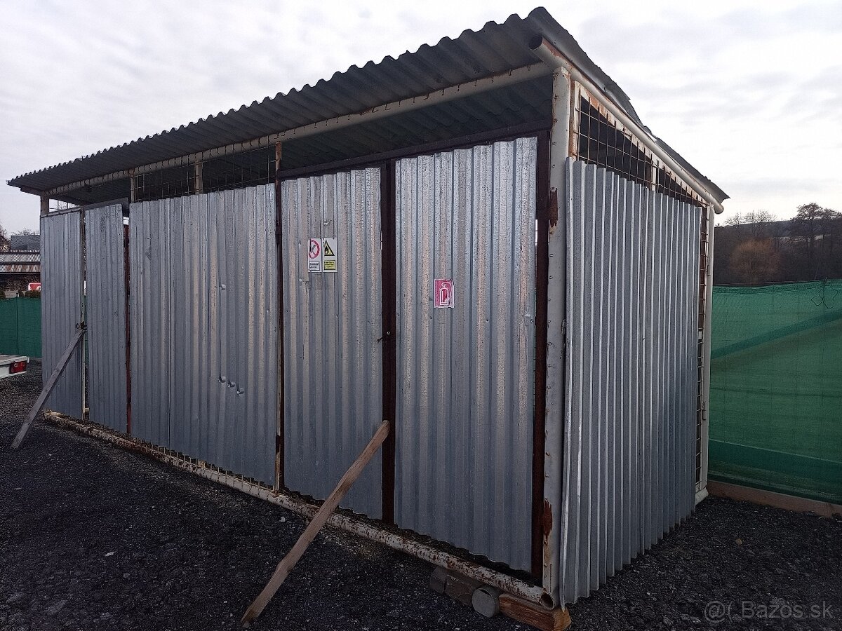 Predám budu, volieru, pristresok rozmery 6x2x2 m. Material kov, kari rohoz, trapez plech.