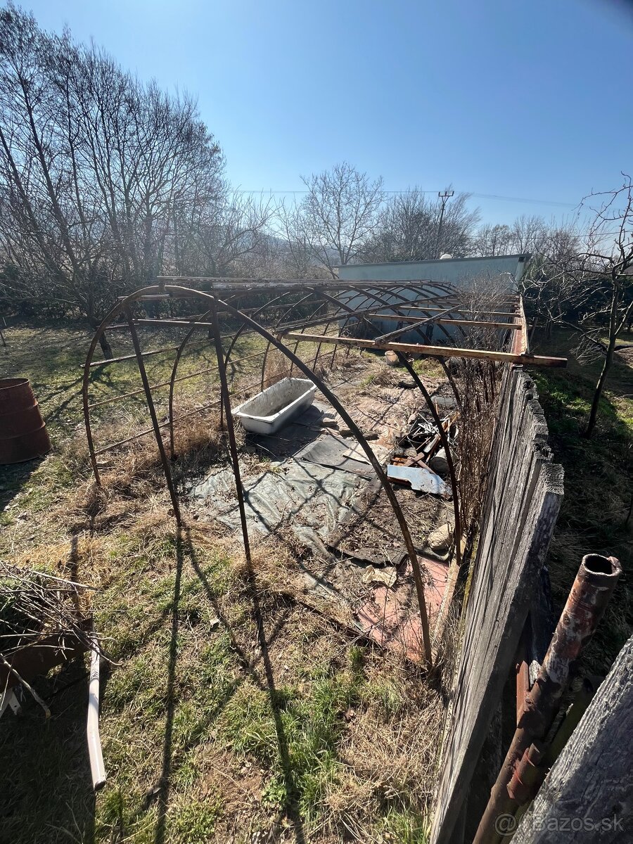 Predam železnú konštrukciu skleníka. Materiál hrubé železo a železné trúbky. Rozmery - dĺžka 7x3,25x2 metre. 2 metre je vnútorná výška v strede. Vhodný na rekonštrukciu alebo iné projekty - prístrešok na privesny vozík, alebo niečo podobne. Cena 290€, možná menšia dohoda. Je potrebné si to prísť naložiť , alebo rozobrať . Jedna jeho strana je upravená aby drzal na plote ako vidno na fotkách. Nachádza sa v lehote pod vtacnikom