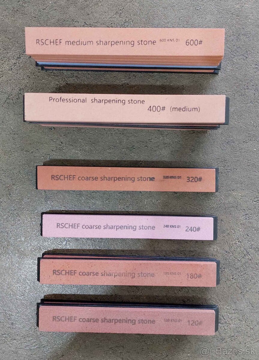 Predám nové vodné brúsne kamene, nikdy nepoužité. 120 - 2ks, 180 - 2ks, 240 - 1ks, 320 - 1ks, 400 - 6ks, 600 - 6ks, 800 - 3ks, 1200 - 2ks, 2000 - 3ks Dôvod predaja je ten, že používam profesionálne brusivá .Možná dohoda na cene pri kúpe všetkých