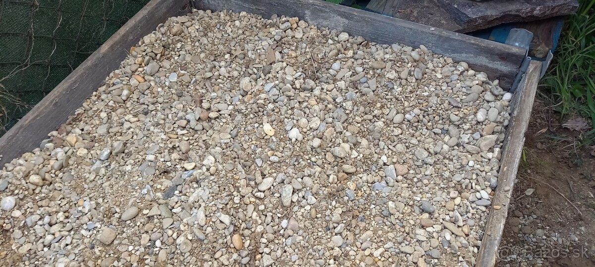 preosiate štrkove kamene cca 0.4m2. Na ochodzu, skalku, na lôžko pod šlapaky...k tomu cca 2 vedrá malých kúskov betónu a tehly na podsyp.