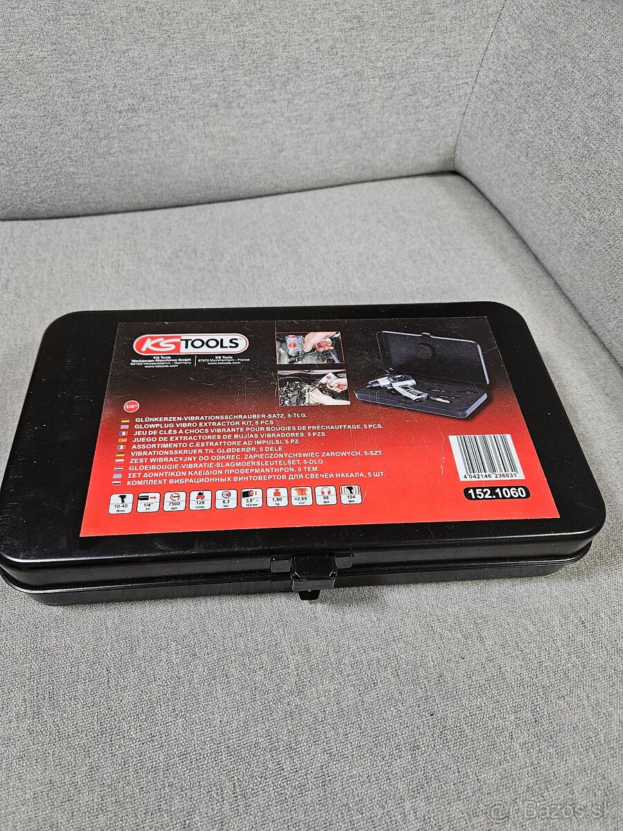 Predám novú, nepoužitú súpravu KS Tools 152.1060 – profesionálny pneumatický vibračný skrutkovač určený najmä na bezpečné povoľovanie zapečených žeraviacich sviečok bez poškodenia závitu.