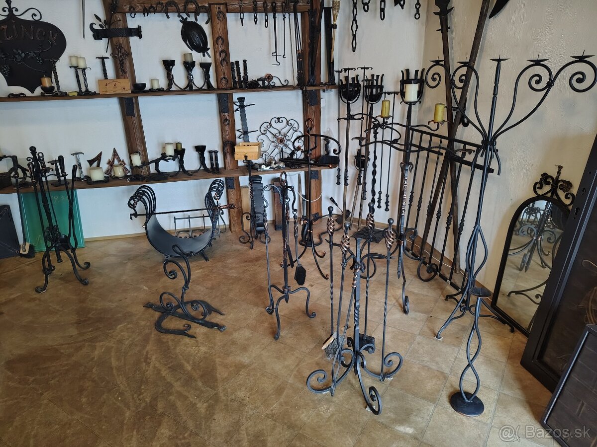 Rozpredáme rôzne kované výrobky zo skladu, krbové náradia, kôš na drevo, svietniky.