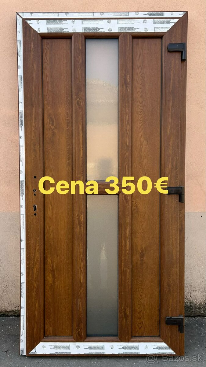 Plastové uplne nové, masívna konštrukcia s 7cm širokým profilom zárubne a hliníkovým prahom, veľké 3D nastaviteľné pánty na dverách, 5bodový zamok pravé aj ľavé prevedenie, farba zlatý dub aj viac kusov.