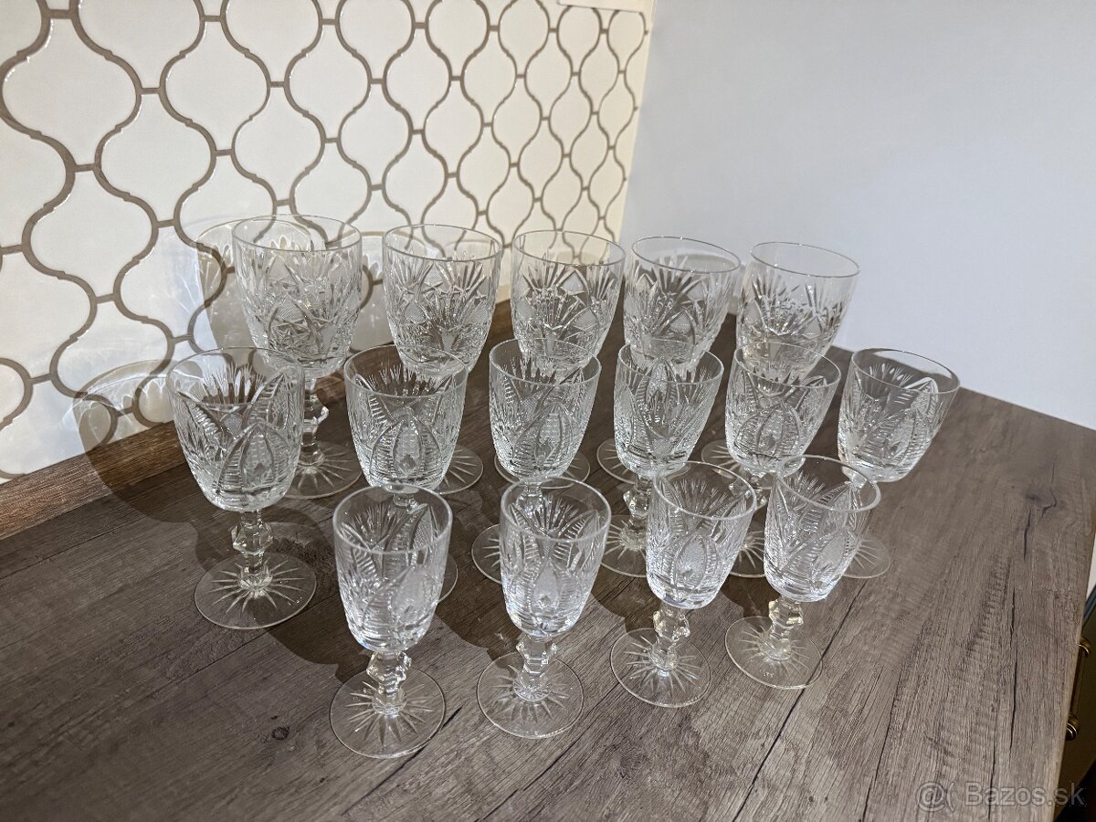 Velky set brúsených krištáľových pohárov