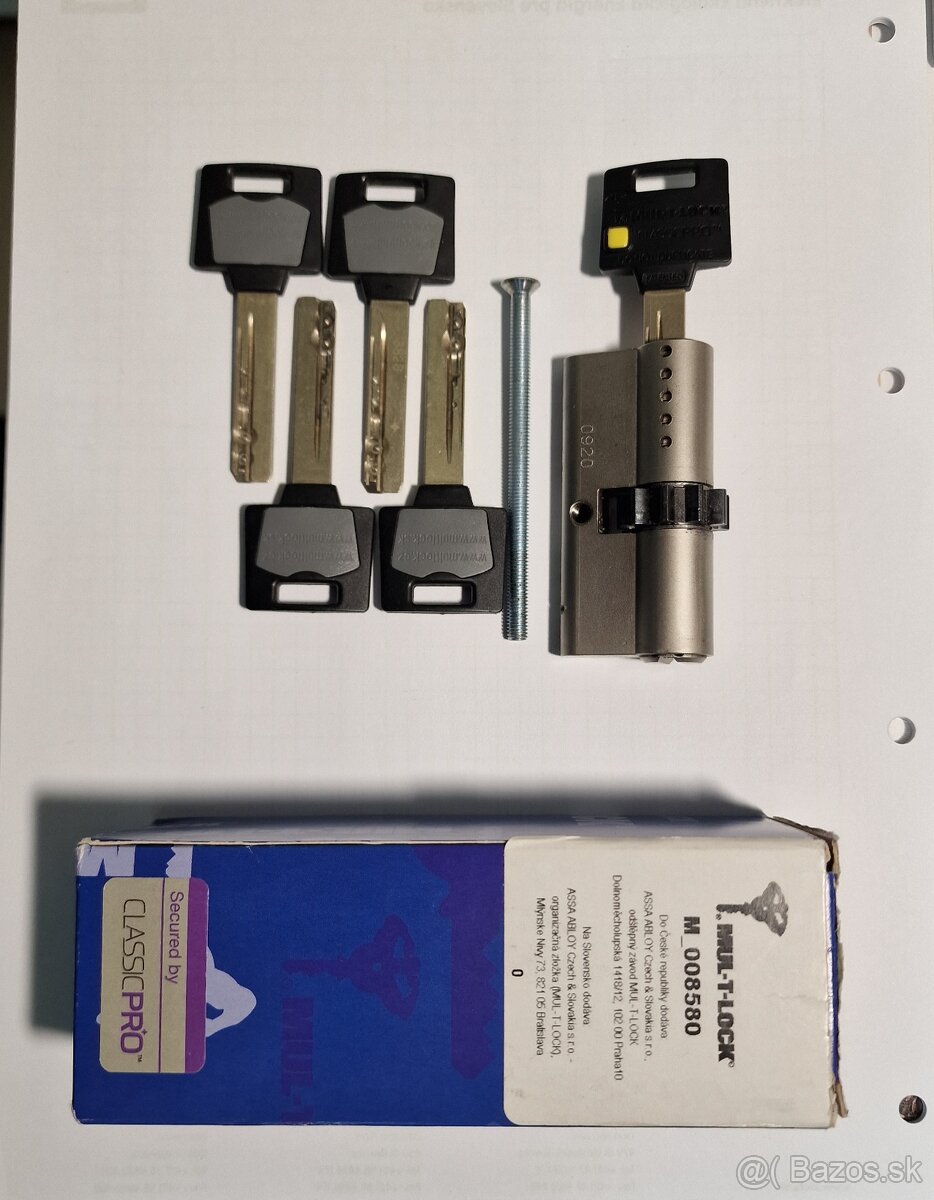 Predám bezpečnostnú vložku MUL-T-LOCK Classic Pro, 4. bezpečnostná trieda s ozubeným kolieskom (10 zubov). Originál balenie, bezpečnostná karta a 7 kľúčov. 100% stav, ako nová, používaná krátko, predaj z dôvodu zmeny vlastníka bytu. Nová cca 90 € + 20 € dorobenie dvoch kľúčov.