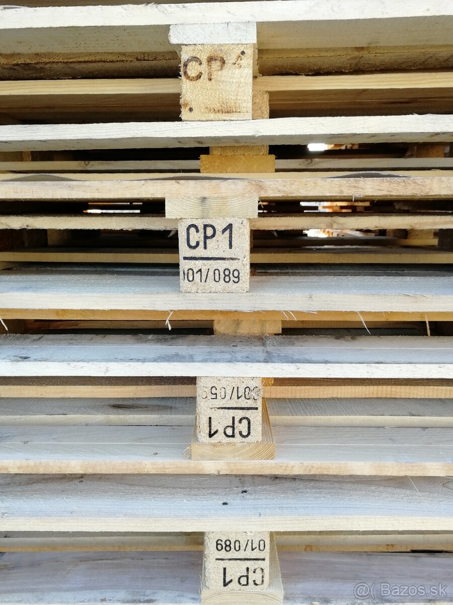 Predam svetle drevene palety s oznacenim CP1 po jednom pouziti,suche uskladnene vo vnutornych priestoroch.Kamionove mnozstvo,cena 5,6e ks.