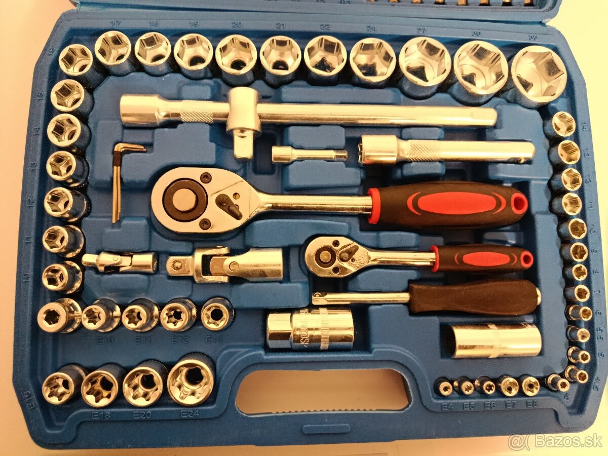 Kompletná a univerzálna sada nástrčných kľúčov so 108 dielmi je navrhnutá pre široké spektrum použitia od domáceho majstrovania až po profesionálnu dielenskú prácu. Vďaka kvalitnej chrómovo-vanádiovej oceli ponúka vysokú pevnosť, dlhú životnosť a odolnosť proti opotrebeniu. Bohatá výbava vrátane nástavcov TORX, bitov, predĺžení a dvoch račien zaisťuje perfektné prispôsobenie pre každú prácu. Všetko je uložené v praktickom kufri, ktorý udržuje náradie prehľadne usporiadané a ľahko prenosné.
