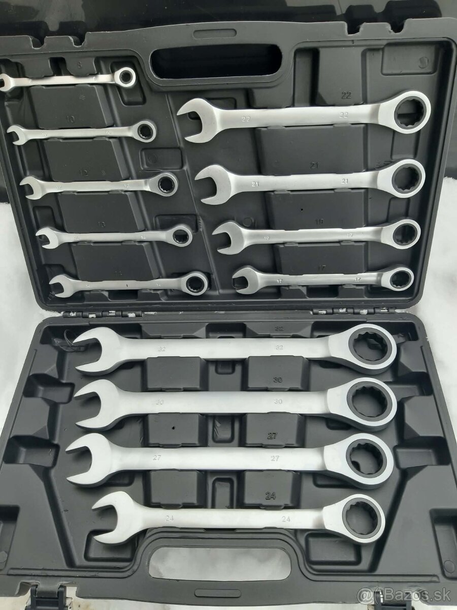predam sadu račnových očko vidlicových kľučov v plastovom kufriku.