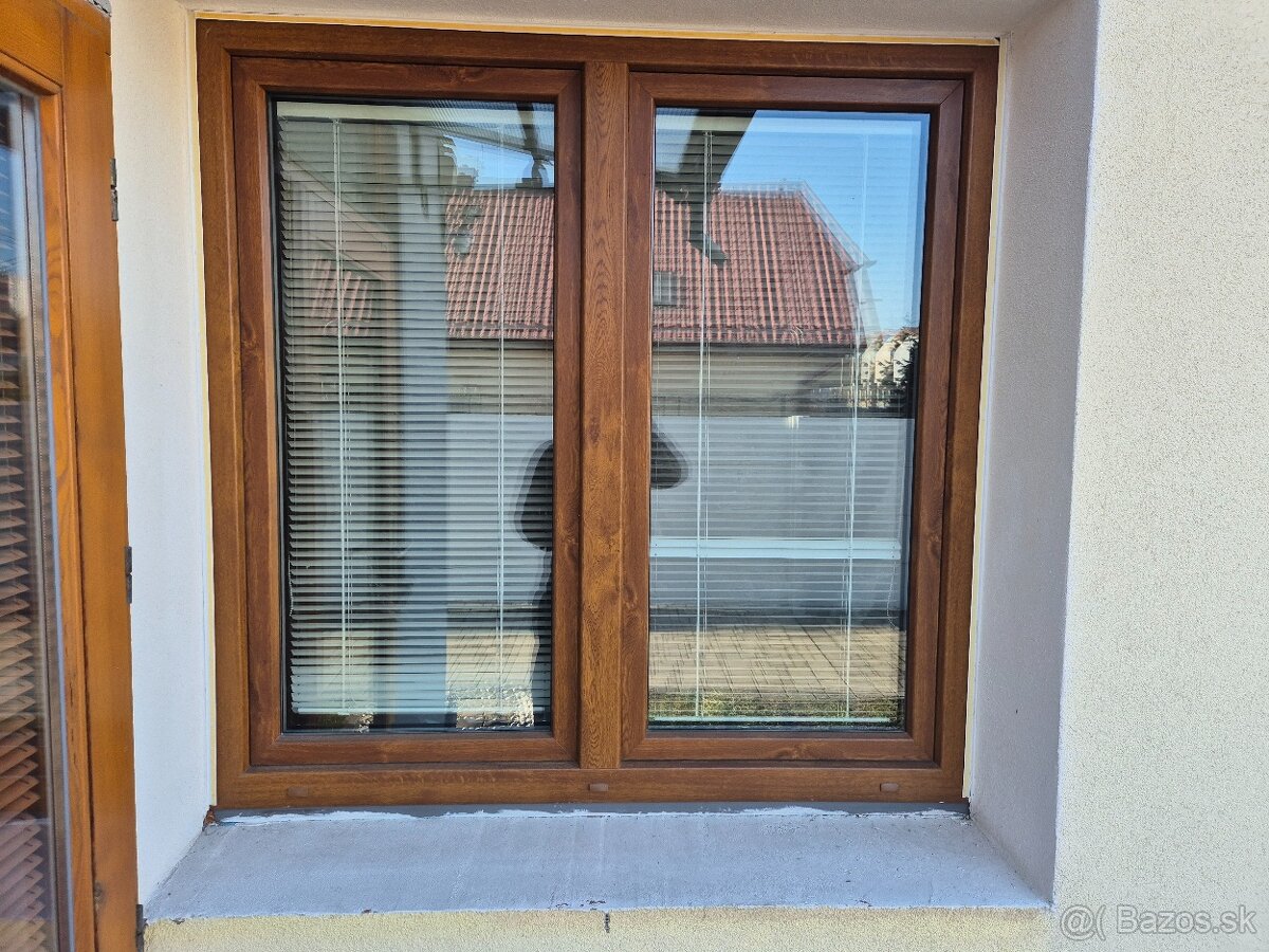 Predam plastove okno ktore bolo kupene a namontovane v roku 2025, dekor von zlaty dub dnu biele, je to trojsklo,okno komplet aj s vnutornym parapetom a zaluziou tak ako na foto. Rozmer je sirka 176cm vyska 142cm plus podkladova lista 3cm.