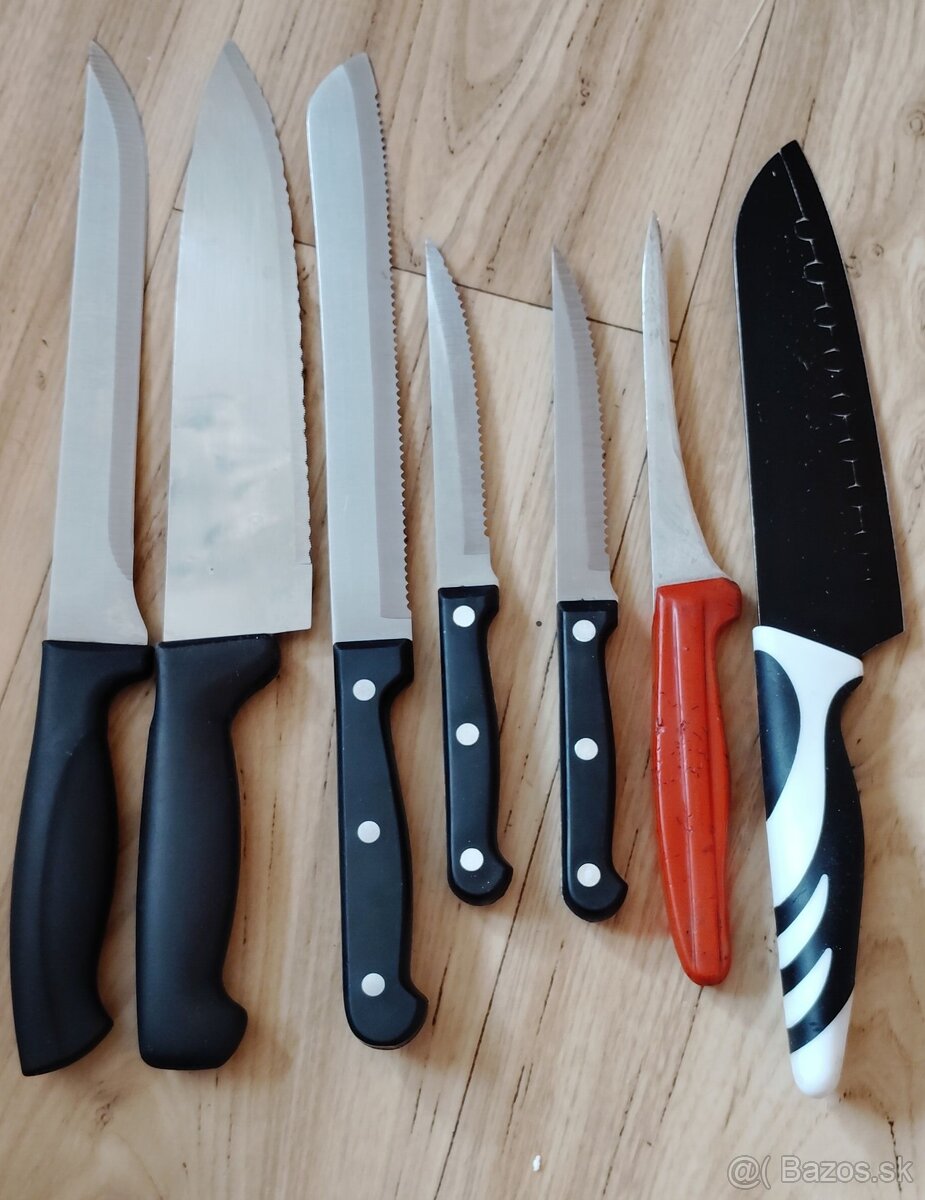 Kuchynske noze - [15.2. 2026]Predam set kuchynskych nozov. Mensie boli chvilku pouzivane a su menej ostre, velke su ostre.