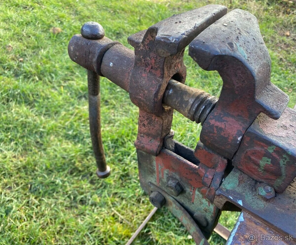 Predám kvalitný starý kováčsky zverák aj so stojanom ( tak ako vidíte na fotke ).