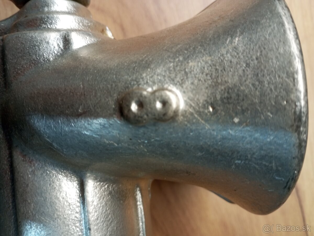 Predám používaný, v zachovalom stave mlynček na mäso č.8. K mlynčeku pridám aj náhradné nože a šajby. Všetko na foto. Kvalitná povrchová úprava je nepoškodená, bez korózie.