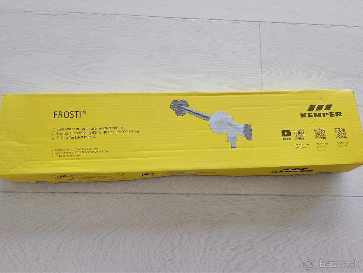 Predám mrazuvzdornú vonkajšiu armatúru ( ventil ) značky Kemper modelovy rad Frosti- Plus. Je určená pre steny 15 - 45 cm - z osobných skúsenosti aj viac , závisí ako hlboko ju osadite do steny. Ventil netreba na zimu vôbec odstavovať od vody, nezamrzne, lebo celý je hlboko v stene. Cena 100e. Dohoda