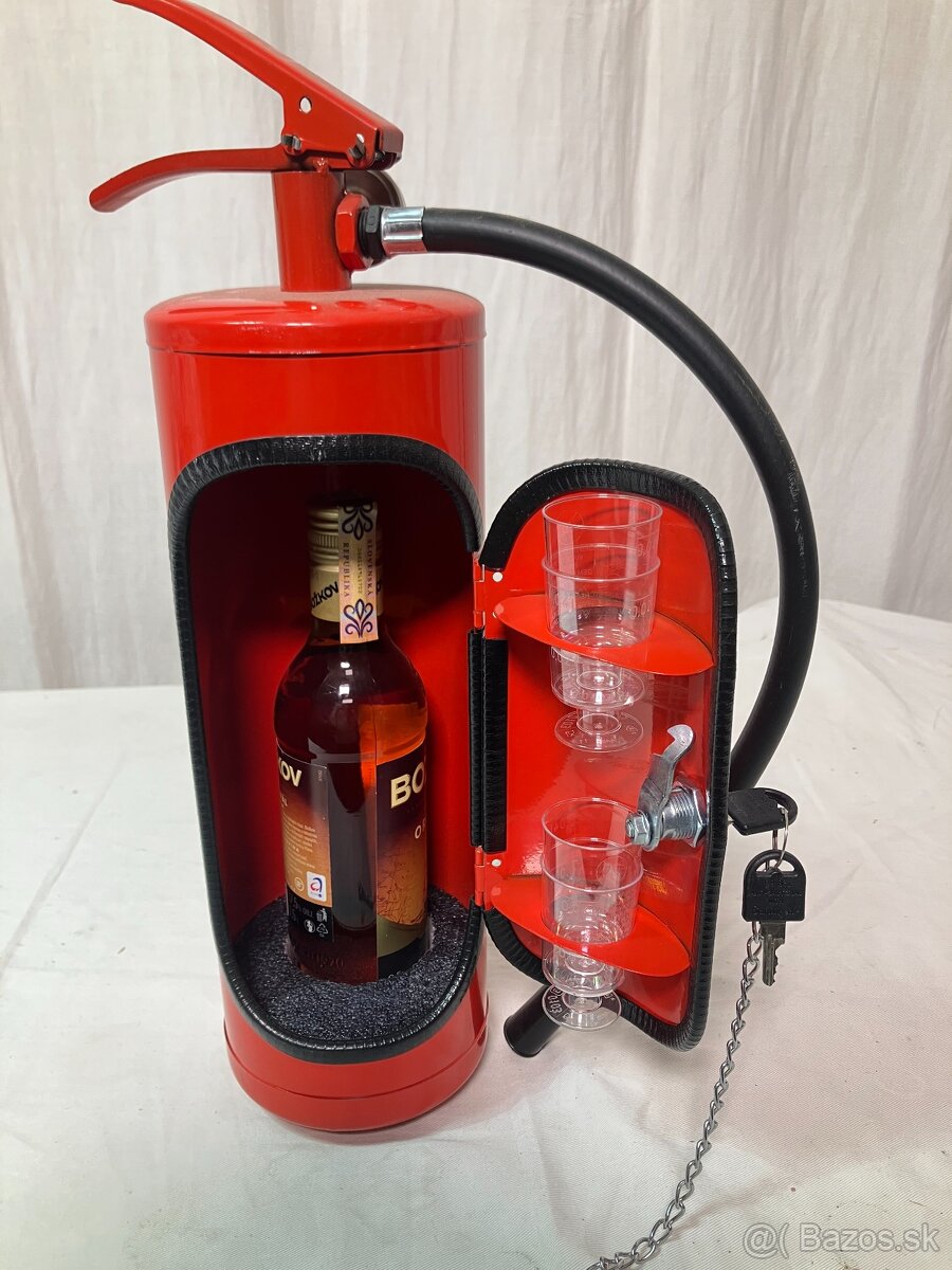 Hasiaci prístroj je mobilný bar, na fľašku a poháriky.