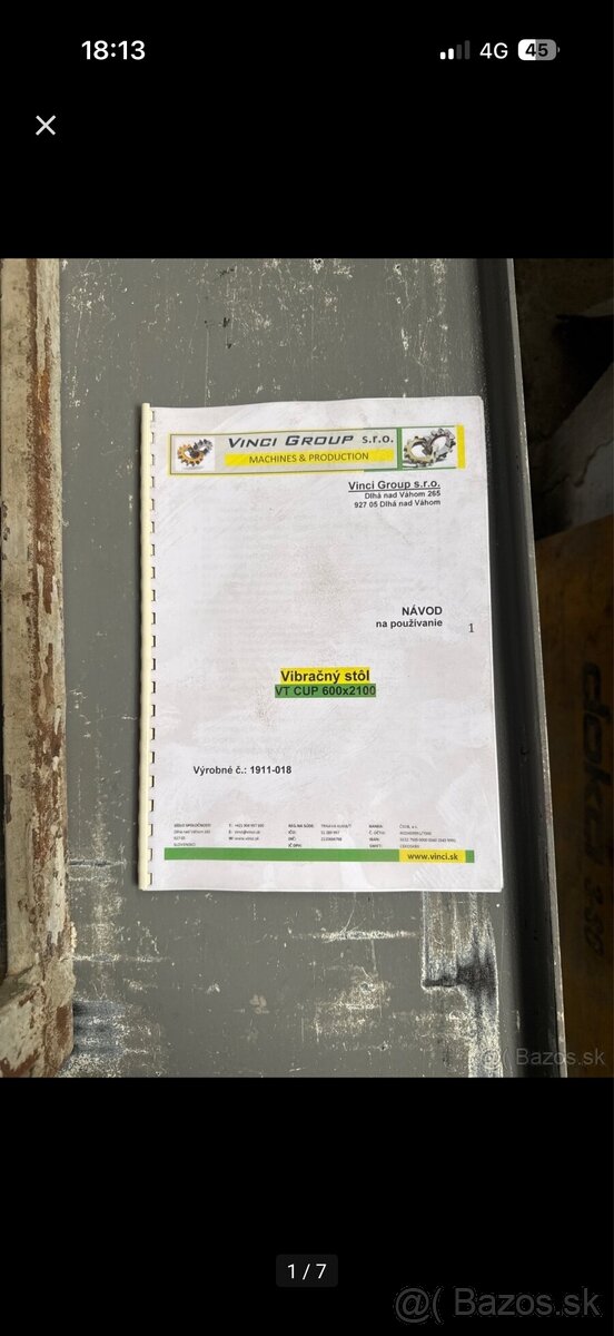 Vibračný stôl 2300mm700mm - [5.3. 2026]Mám na predaj vibračný stôl s rozmermi 2300mm*700mm. Môžem poslať na požiadanie video, akú dokáže utriasť betón vo forme. Po dohode môžem aj doniesť.