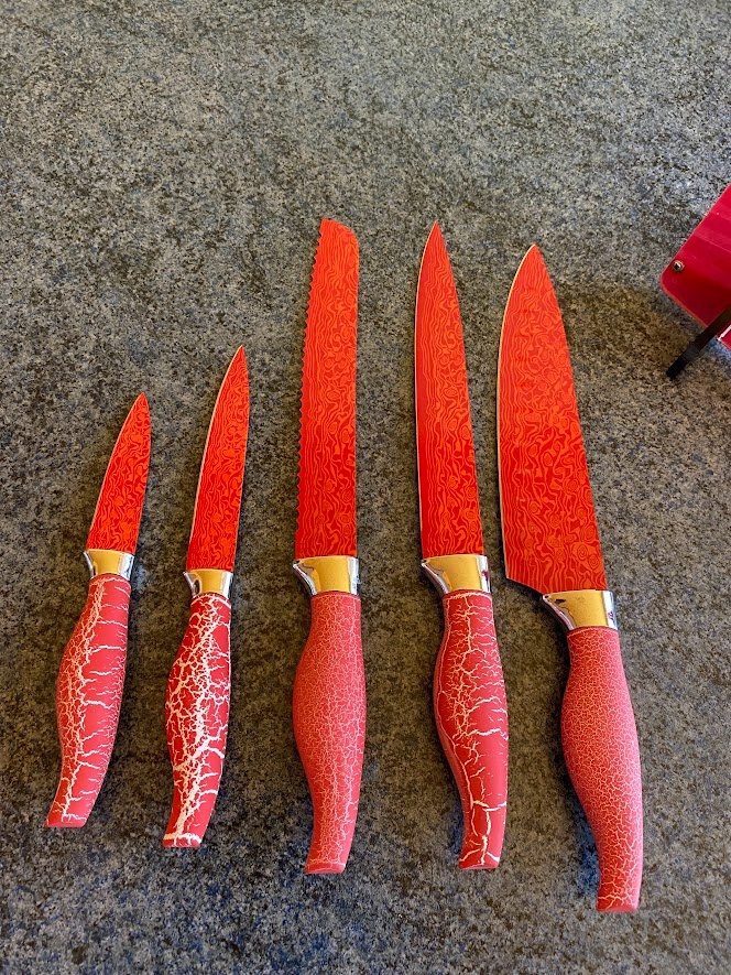 Predám sadu nových kuchynských nožov, 5ks + stojan za 15,-Eur