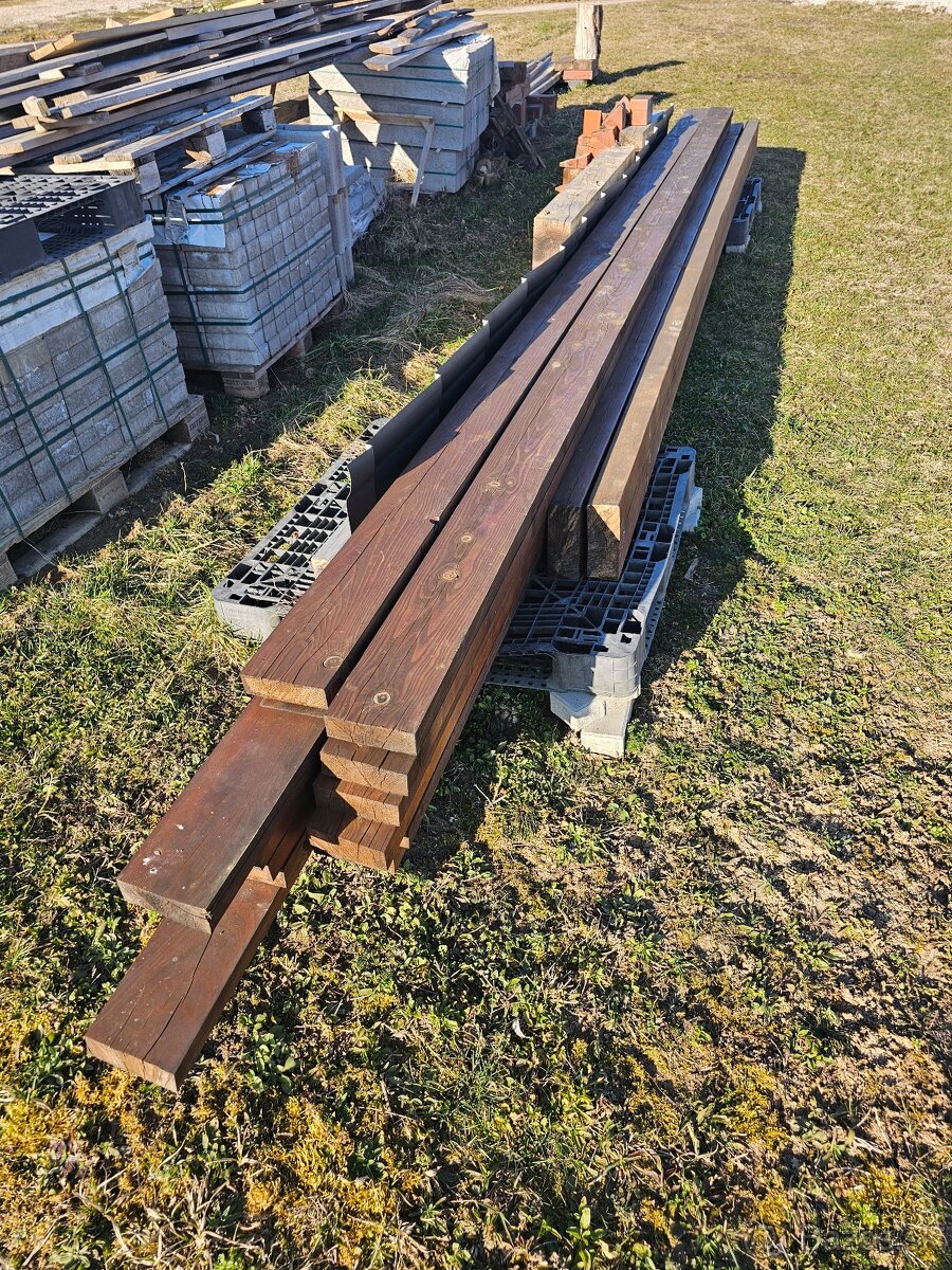 Všetky kusy su ohoblovane, obrusene a natreté dvoma vrstvami BORI HELIOS odtieň 3. Týk. Ostalo mi to zo stavby terasy.