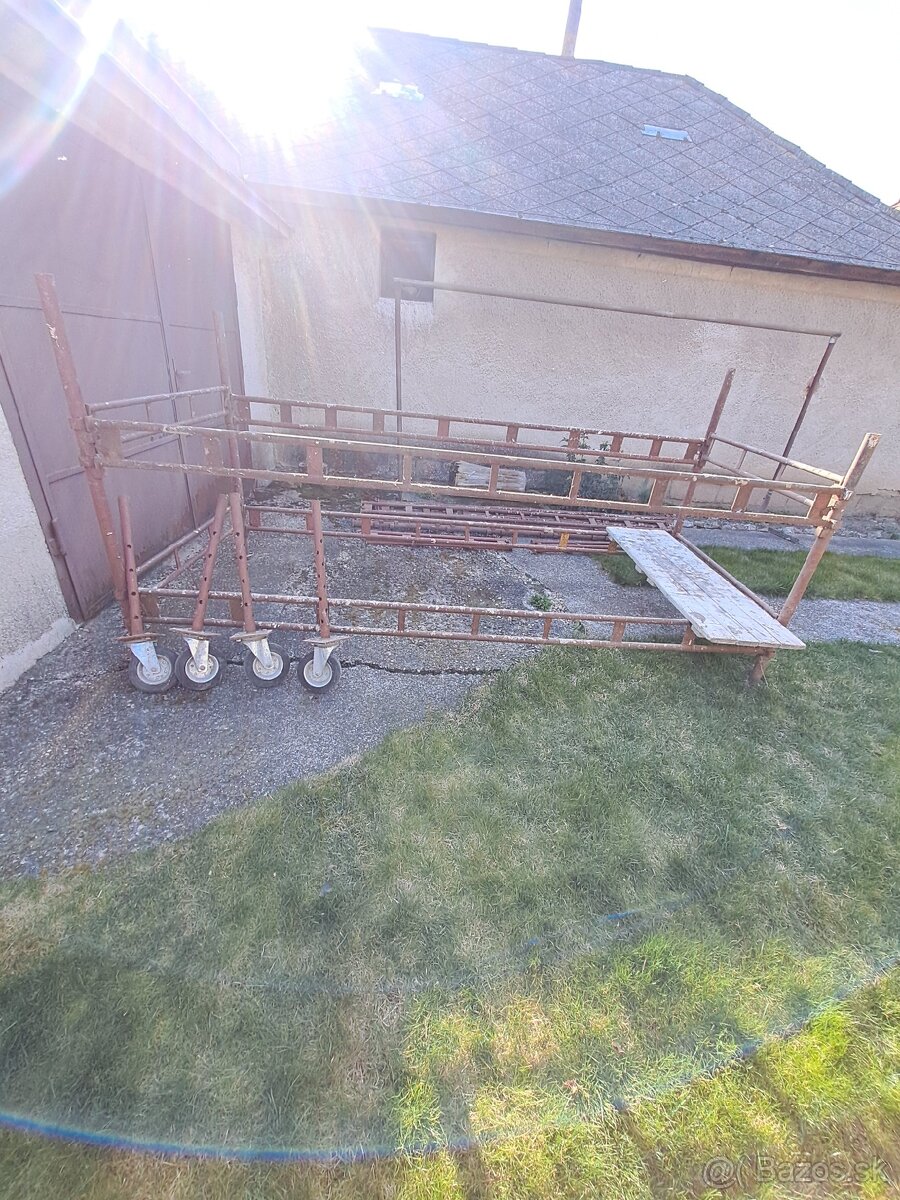 Predám haki lesenie,dá sa zmontovat 3 klietky za sebov.Dá sa zmontovať klietka menšia na kolesá do izby.Stojka 3m 8ks,stojka1,70m 4 ks,prečky veke 11ks +4ks zabradlie,prečky malé 8ks+6 zábradlie,klatka na haki lesenie 1ks,otočné kolesa na haki lešenie 4ks,podložky 10ks