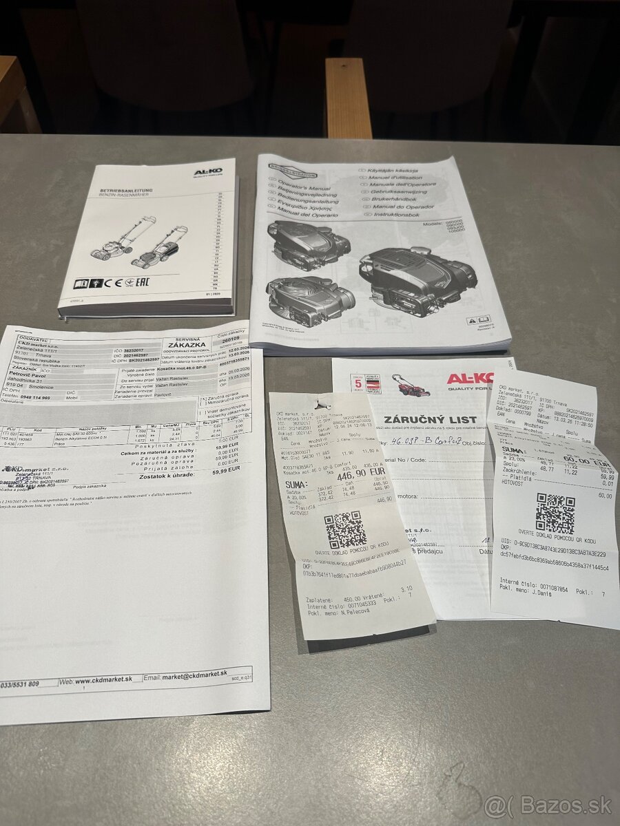 Benzinová kosačka s pojazdom - [26.3. 2026]Benzinová kosačka, málo používaná, perfektný stav, po servise, je vhodná na kosenie väčších plôch. Otočné koleso na prednej strane umožňuje jednoduchšie sa otáčať, je veľmi ľahké kosenie okolo stromov a kvetinových záhonov.