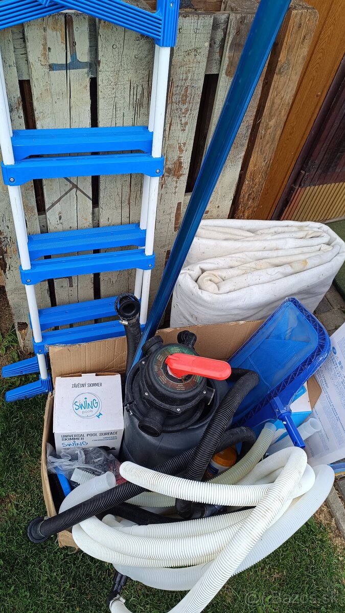 Intex bazén - [25.3. 2026]Predám náš bazén,použivany 5 rokov ,no plne fukčný. Na pár miestach je hrdza a je roztrapkaný(viď foto). V cene je piesková filtrácia a solinator a svetlo a príslušenstvo . Solinator kupovaný v roku 2025,ešte v záruke . Iba osobný odber ! Volať na číslo 0944533582.