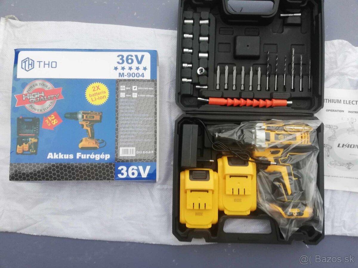 akumulatorova dvojrýchlostná baterková uťahovačka s led osvetlením dvoma baterkami nabíjačkou a príslušenstvom byty vrtáky.