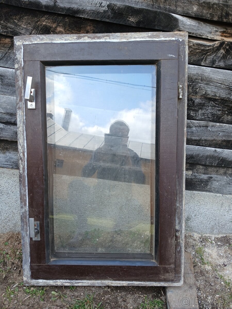 Predám drevené komplet okno: zasklené, s kľučkami. Rozmer 58x88cm