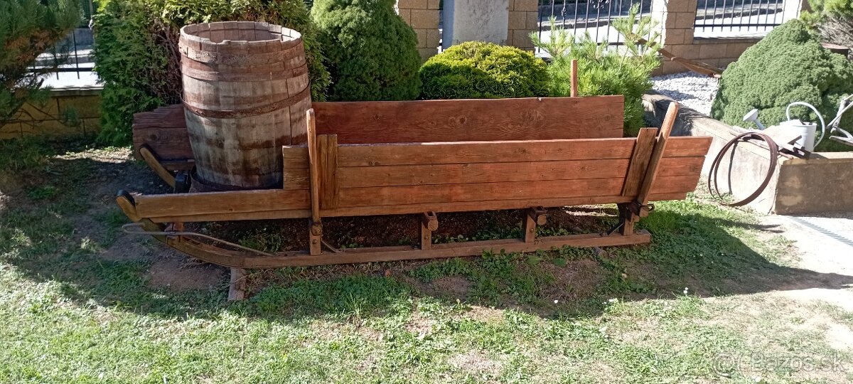 Predám veľmi pekné staré drevené konské sane, dĺžka 294 cm, šírka 105 cm, bez suda, vhodné ako dekorácia na chalupu, do záhrady, pred reštauráciu, alebo k altánku za cenu 70,-€. Pozri aj moje ostatné inzeráty