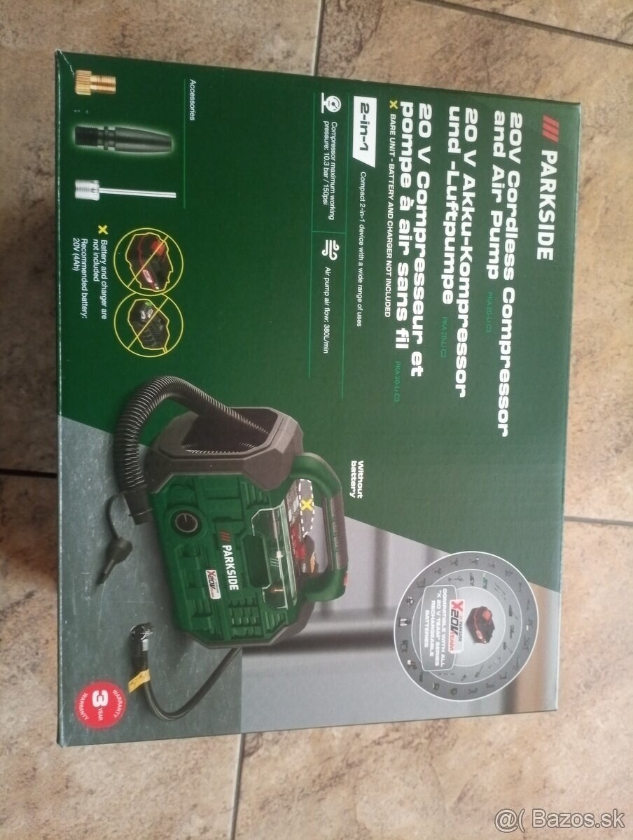 Predám nový zabalený Parkside aku kompresor a pumpu na 20 V batériu X20V Team.
