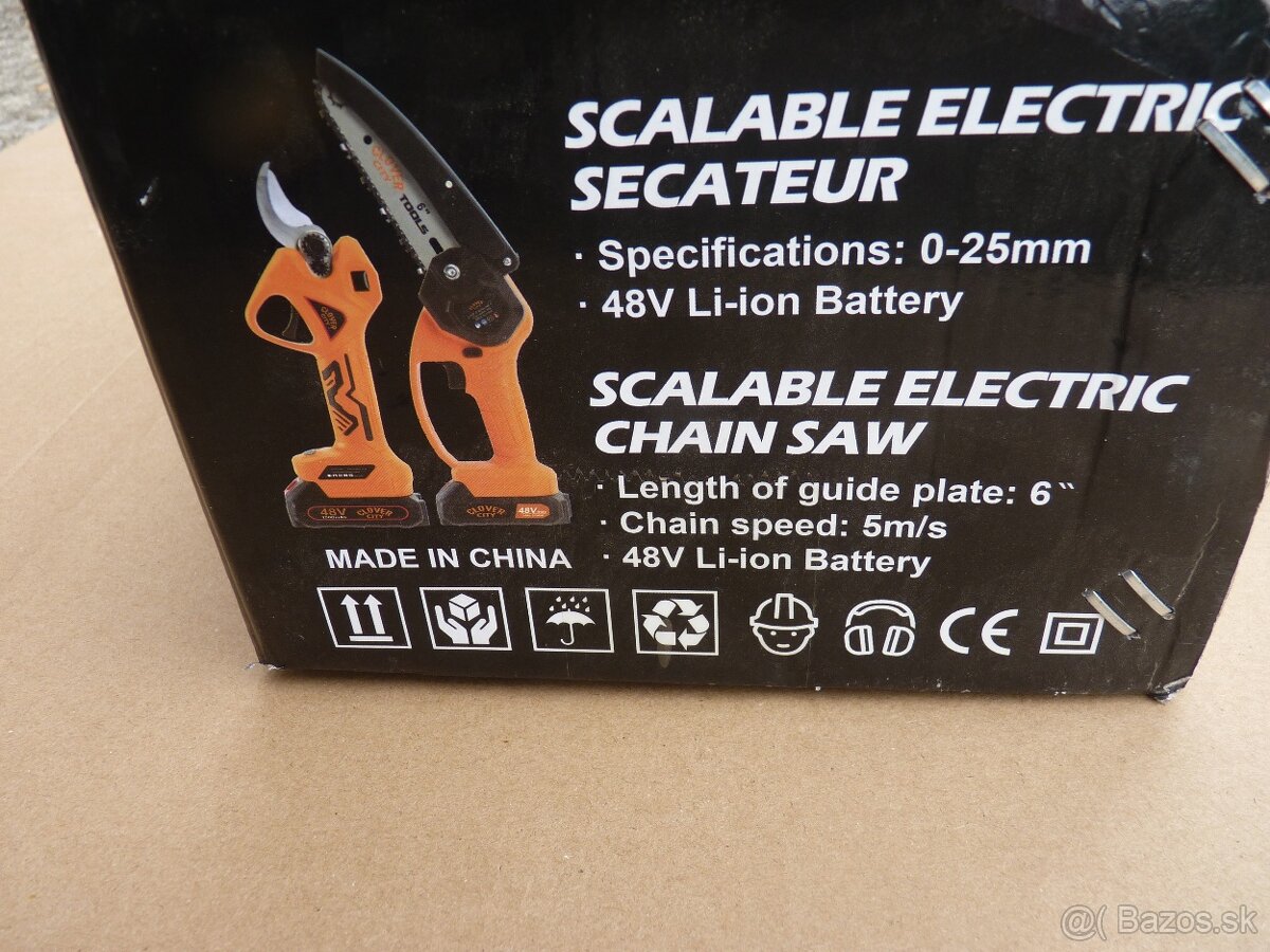 Baterkove akumulatorove nožnice na konare a pilu s teleskopickou rukoväťou baterkami a nabijačkou.