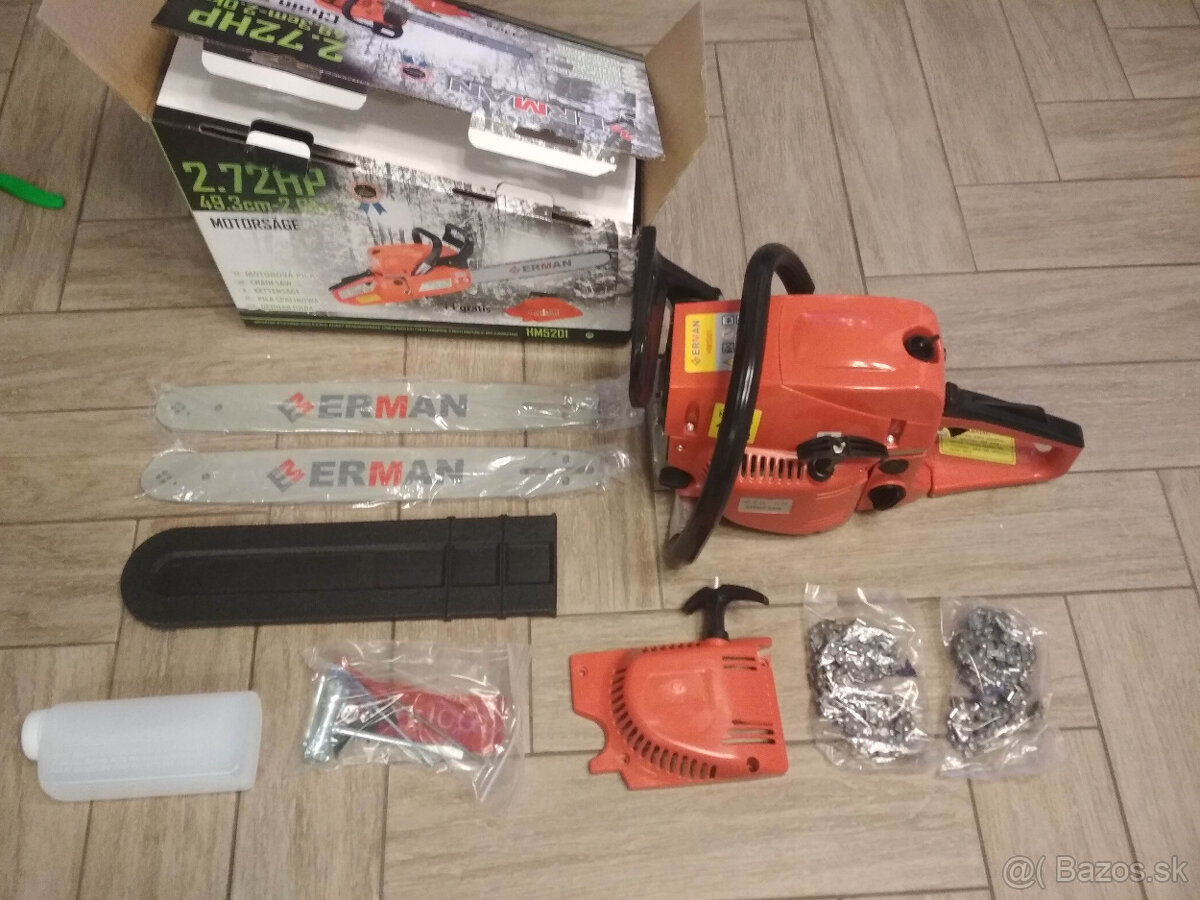 Benzínová motorová píla Erman, 2 Lišty,2reťaze-nová