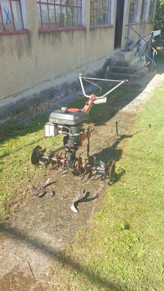 Pokiaľ možno tak komplet s náradím za 1500€ aj so sádzačom zemiakov, malým rotavátorom medzi riadky, veľký rotavátor má záber až 1m a hĺbku 20cm. Všetko tak ako je vidno na fotkách, v dobrom stave, motor je 2T benzín mix s olejom po GO v roku 2021.