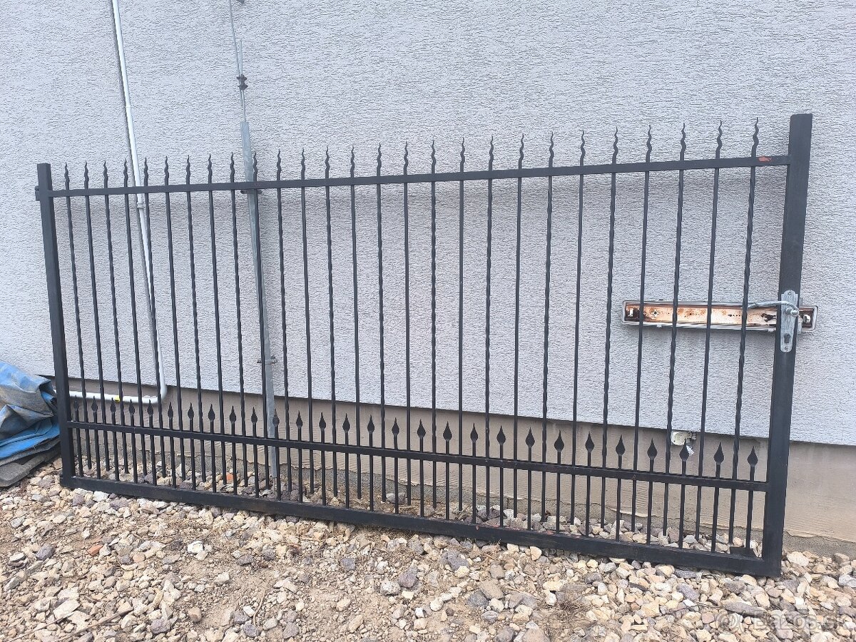 Predám masívnu kovanú bránu, dĺžka 3.4m, výška 1,4 m. Hmotnosť cca.120kg. Brána sa otvára na pántoch ale je možné ju použiť ako posuvnu bránu.