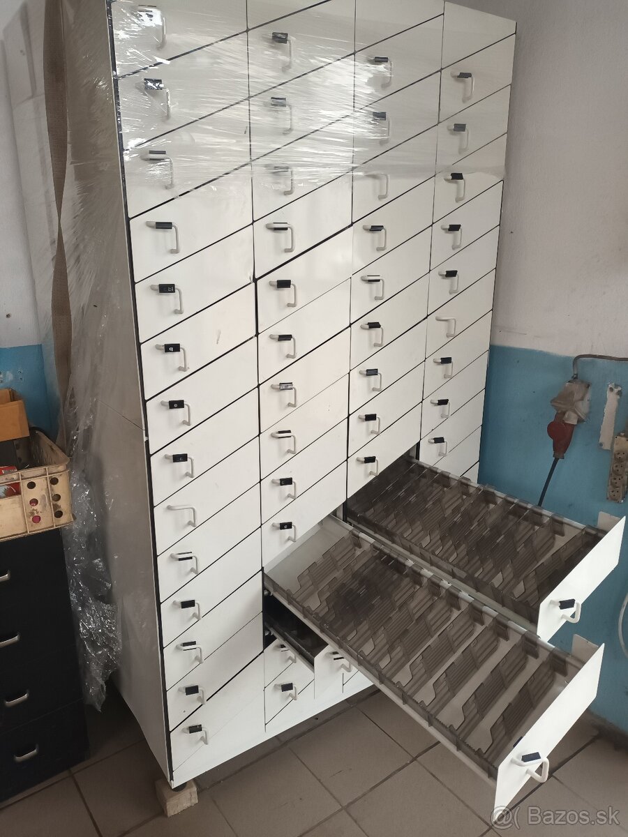 kovova skrina,organizer,zasuvky,54x sufliky,pevne-predelene kazda 10xpohyblive prepazky ,rozmer vyska 220,sirka 120,hlbka 100cm,,vysuv 95cm,,ciste- boli tam lieky