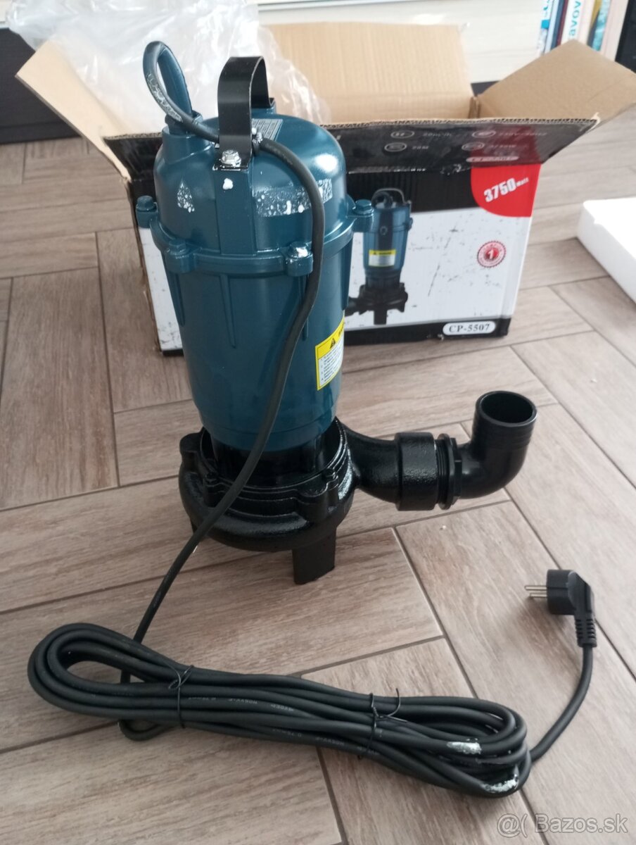 Predám nové ponorné kalové čerpadlo . Max. výkon motora 3750 W, napätie 230 V / 50 Hz, max. prietok 20 000 l / h, priemer hrdla 2 col / 52 mm, dĺžka napájacieho kábla 10 m, priemer čerpadla 28 cm, váha 11kg.robustne odolné liatinové telo, na čerpanie odpadových vôd zo septiku, vodnej nádrže, žumpy či pivnice, vybavené tepelnou poistkou, v spodnej časti účinný nôž na hustý kal.