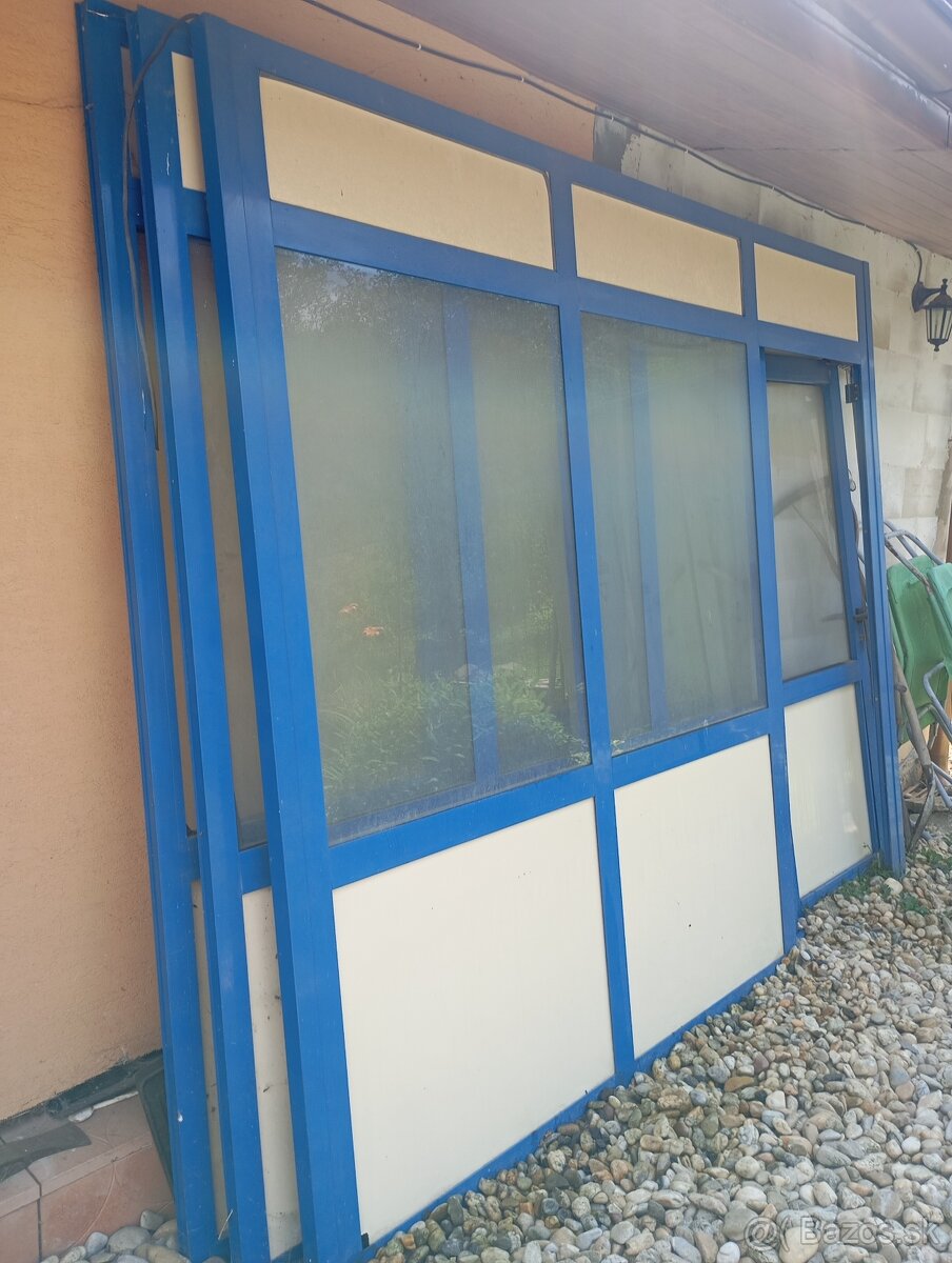 Hliníková konštrukcia v tvare U, sklenené okná, 1x dvere.