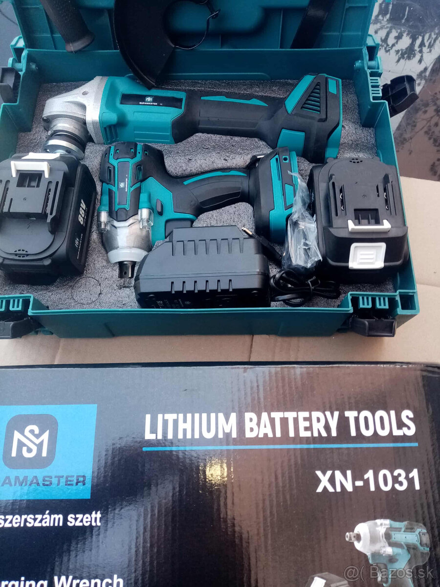 aku baterková akumulátorová uhlová brúska flexa 125mm s regulaciou otačok razový utahovak dve baterky nabíjačka v plastovom kufriku.