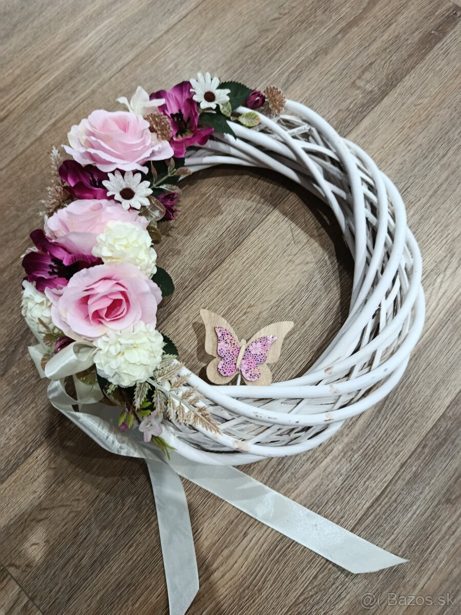 Na predaj krásny Jarný veniec zdobený jarnymi textilnými kv - [18.3. 2026]Na predaj krásny Jarný veniec, zdobený jarnymi textilnými kvietkami ktoré su dekorované bohato na spodnej časti venca v rôznych farebných odtieňov béžovej, marhuľovej a oranžovej farby. Veniec má ideálnu veľkosť a tým veľmi pekne vynikne zavesený na dverách, terase alebo v altánku. Venček pôsobí prí ...